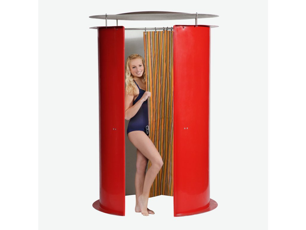 Táto unikátna prezliekareň vyrobená z 2 dielov z GFK sa ľahko inštaluje (na spodnom okraji sú 3 upevňovacie body pre zemné kotvy). Je robustne vyrobená a ponúka možnosti úložného priestoru pre šatník.