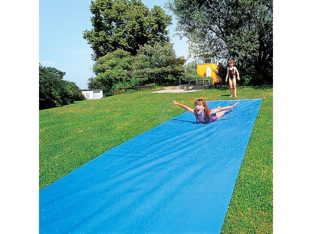 Tobogan -vodná šmykľavka – obzvlášť zábavná v horúcom počasíTobogan je obľúbenou atrakciou na podujatiach v školách, škôlkach a centrách voľného času. Každé dieťa miluje špliechanie vodou a užije si šmýkanie po tráve. Šmýkačka je vyrobená z odolnej plachty a má ½-palcové pripojenie na zavlažovanie. Je dlhá 6 m a široká 1,10 m. Plachta s hrúbkou 2,5 mm je mimoriadne odolná, takže sa deti môžu špliechať a šmýkať do sýtosti.
